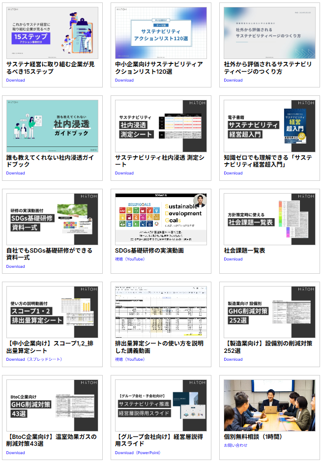 …など、企業のサステナビリティ経営にすぐ使えるツールを無料プレゼント!