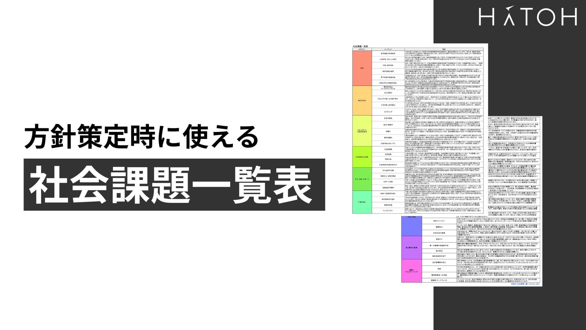 なお、ゼロからこの一覧表を作成するには膨大な工数を要します。その際は弊社で用意している「社会課題一覧表」をご活用ください。