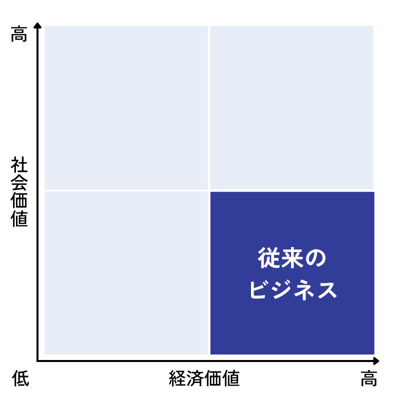 ・従来のビジネス : 経済価値を優先するため 右下に位置