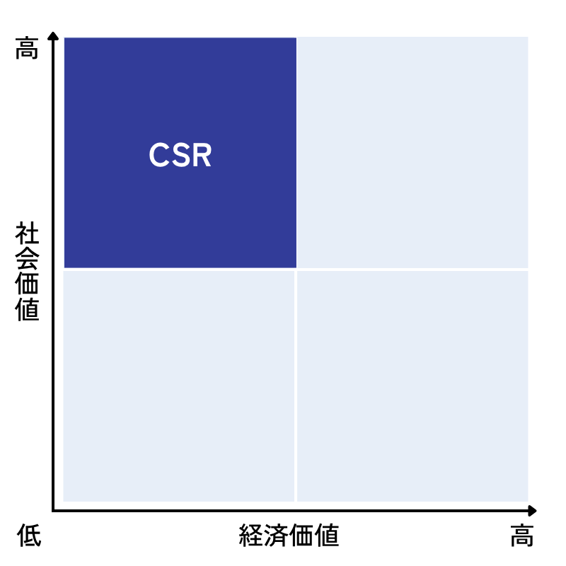 ・CSR : 事業活動とは無関係の奉仕活動なども含められるので左上に位置