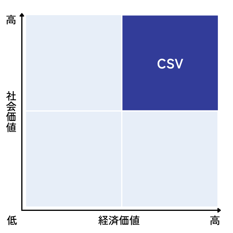 CSRとCSVは文字が似ていて混同しやすいですが、次の四象限で整理するとわかりやすくなります。